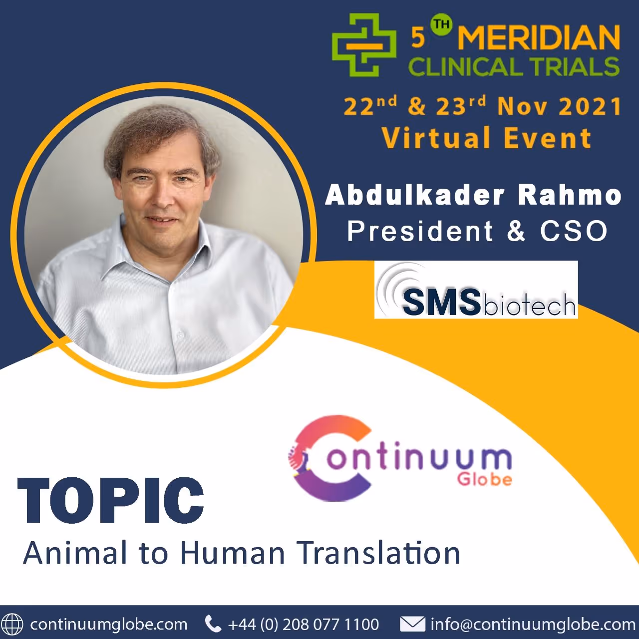 We are glad to announce that Continuum Globe Ltd has onboarded Dr. Abdulkader Rahmo as a speaker for their upcoming 5th Meridian Clinical Trials event.